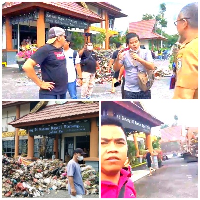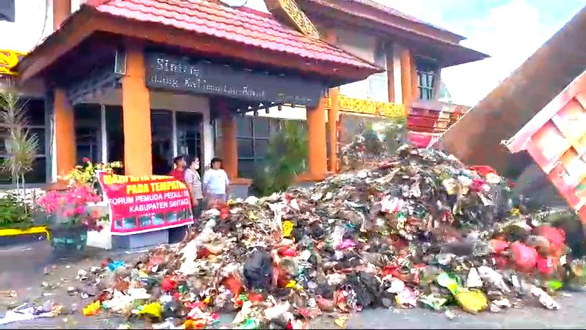 Sampah warga Kabupaten Sintang dituangkan di halaman Kantor Bupati Sintang.