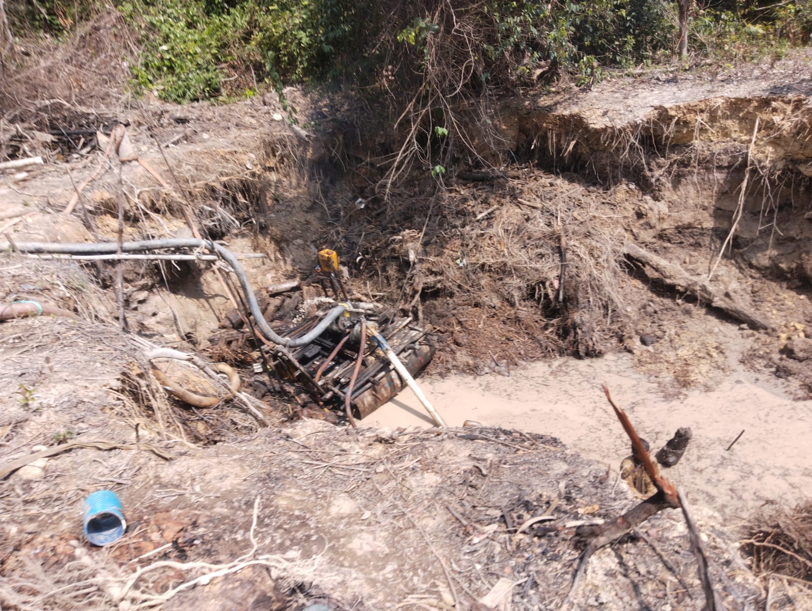 Penambangan pasir ini sudah berjalan satu tahun lebih. Terpantau di lokasi tambang, terdapat sejumlah mesin penyedot pasir bersama malang melintangnya pipa pendukungnya.