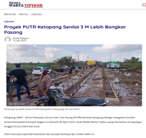 Awak Media Warta Tipikor, ketika itu berupaya menyampaikan kondisi proyek tersebut kepada Bupati Ketapang, Martin Rantan. Informasi ini mendapat perhatian serius .