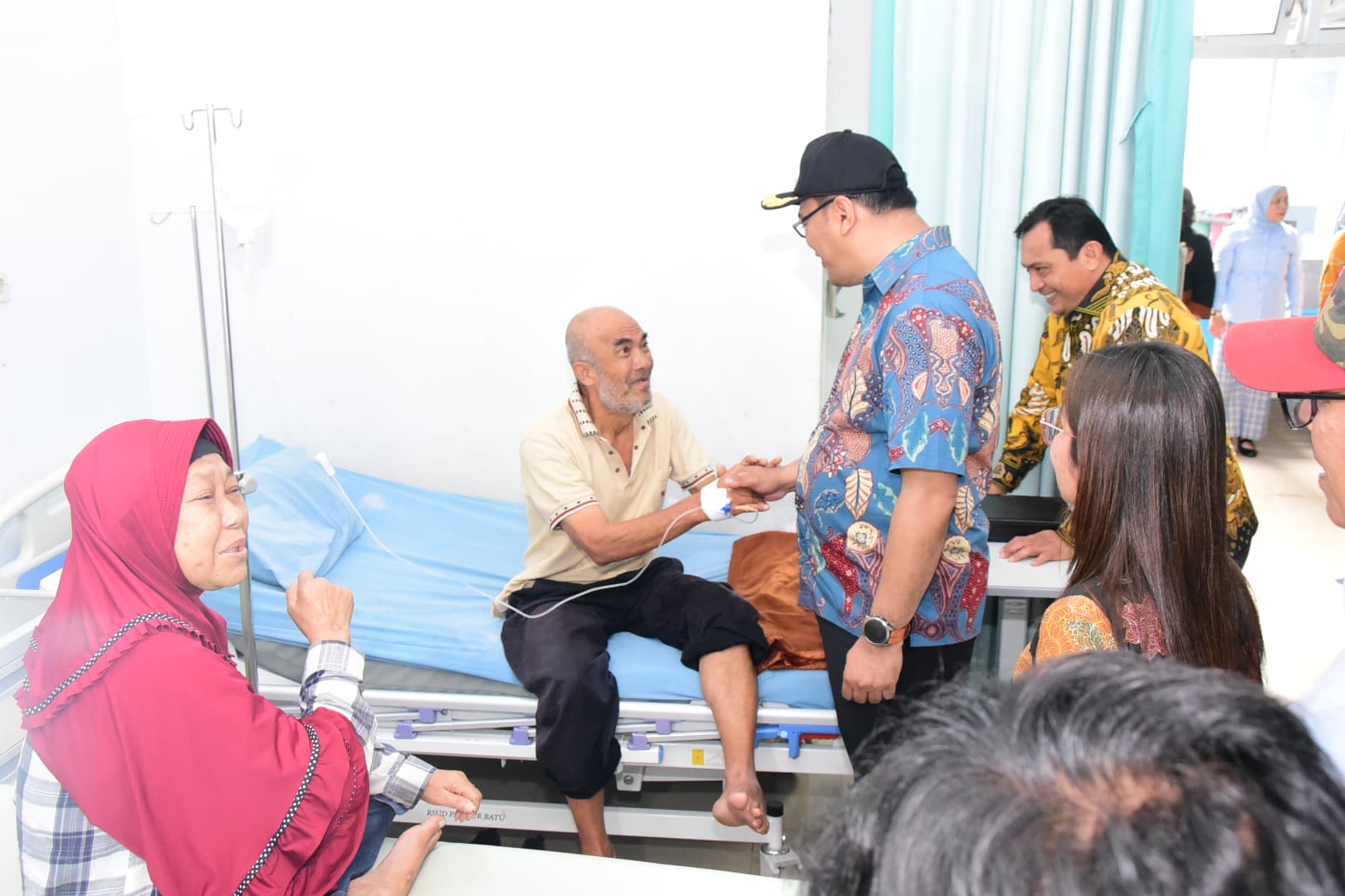 Bupati Deli Serdang, Asri Ludin Tambunan saat menemui pasien di RSU Pancur Batu.