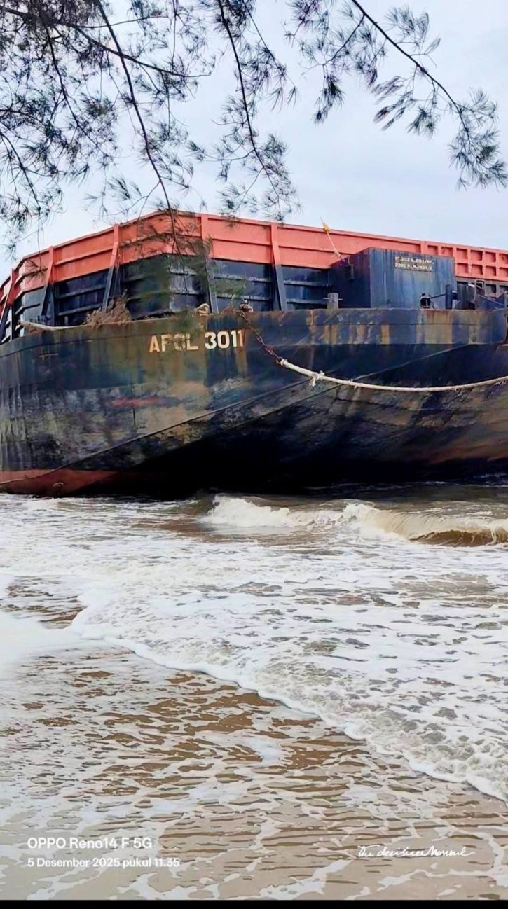 Kemunculan sebuah tongkang tanpa identitas di pesisir Padang 12, Kabupaten Ketapang, Kalimantan Barat, membuat warga dua desa—Desa Pagar Mentimun dan Desa Sungai Nanjung—gempar ,Kamis, (5/12/2025). Tongkang yang disebut warga sebagai tongkang siluman itu terlihat sejak 4 bulan ini langsung mengundang perhatian para nelayan yang hendak melaut.
