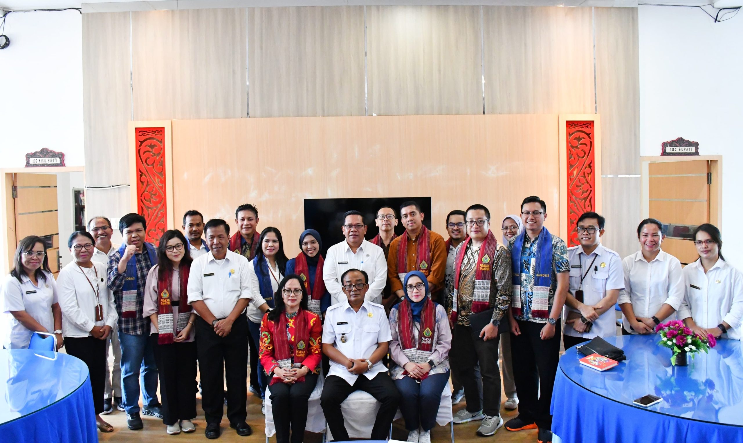 Samosir, MWT – Wakil Bupati Samosir Ariston Tua Sidauruk, SE, MM didampingi Asisten II Hotraja Sitanggang, Kadis Ketapang dan Pertanian Tumiur Gutom, Kadis Sosial PMD F. Agust Karokaro, bersama OPD teknis, menerima kunjungan Tim Bappenas dan UKFCDO (United Kingdom Foreign, Commonwealth and Development Office/Kedutaan Inggris), Tim Kemendagri, dan Bappeda Provsu di Lobby Lt. II Kantor Bupati Samosir, pada Rabu (19/3/2025)
