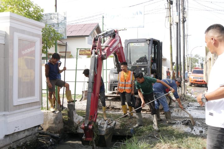 Pengerukan Drainase dilakukan menggunakan alat berat milik Dinas PUTR. “Kita ingin pastikan pembongkaran dan pengerukan lumpur yang menutupi drainase terlaksana dengan baik dan dapat mengatasi persoalan banjir yang kerap terjadi saat musim penghujan tiba dan banjir kiriman,” kata Mahyaruddin Salim.