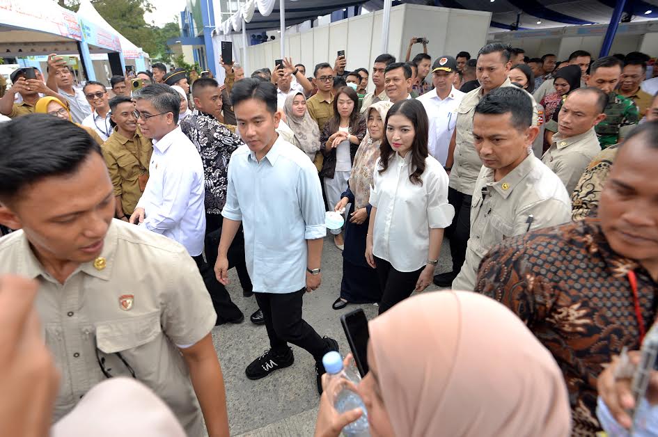Medan, MWT – Wakil Presiden (Wapres) Republik Indonesia Gibran Rakabuming Raka meninjau job fair yang diselenggarakan Pemerintah Provinsi (Pemprov) Sumatera Utara di Balai Besar Pelatihan Vokasi dan Produktivitas (BBPVP) Medan, Jalan Amal, Medan, Senin (23/12/2024). Job fair tersebut diselenggarakan bersamaan dengan Festival Vokasi BBPVP 2024, hasil kerja sama dengan Kementerian Ketenagakerjaan.