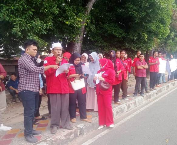 Waratawan yang berunjukrasa di Mapolres Labuhanbatu.