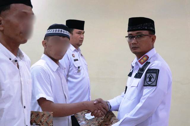 Tebing Tinggi, MWT -Kepala Lembaga Pemasyarakatan Kelas IIB Tebing Tinggi Anton Setiawan menyerahkan secara simbolis remisi khusus keagamaan (RK) kepada 4 perwakilan warga binaan di Gedung Aula Sasana Tama usai pelaksanaan salat Idul Fitri.